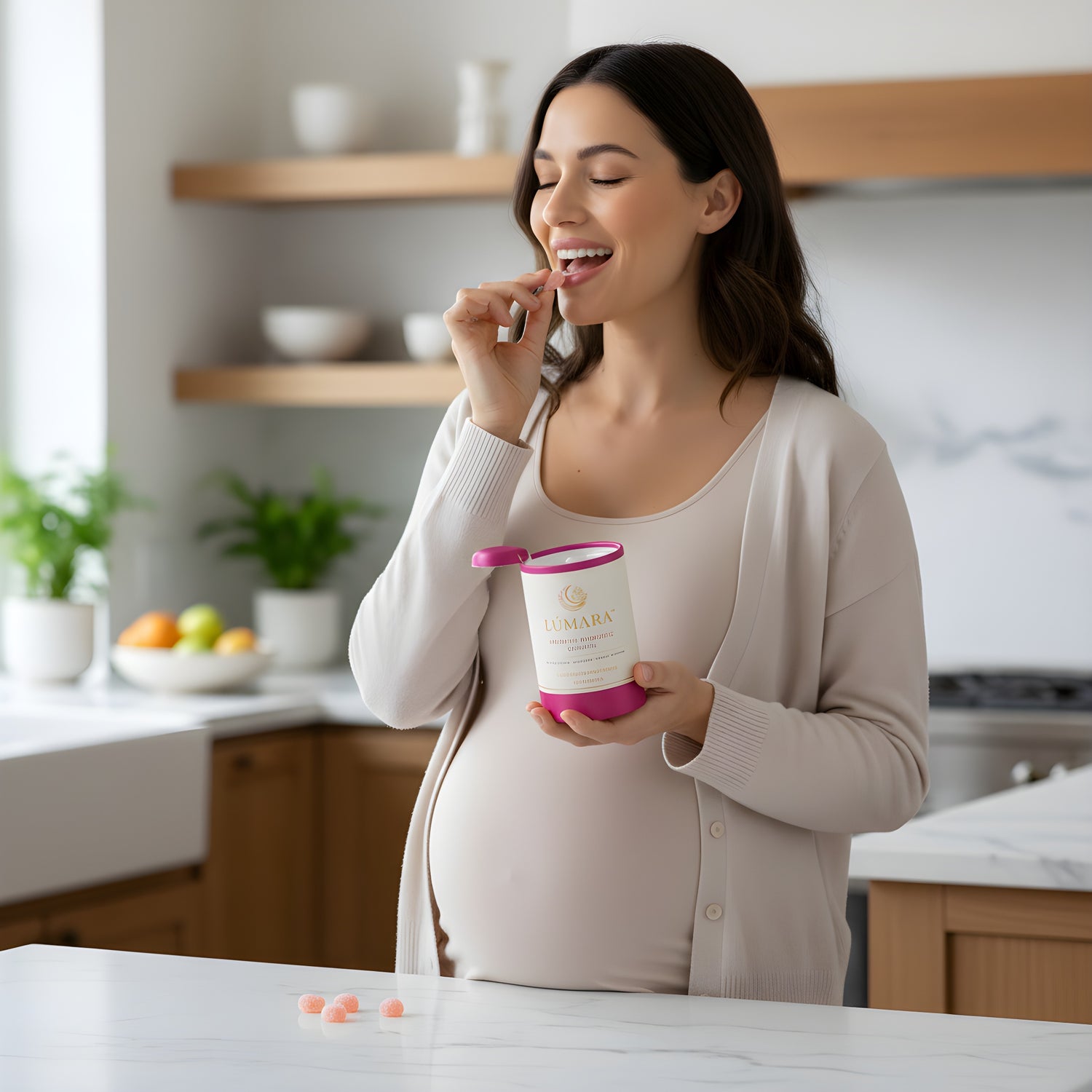 LÚMARA™ Au Naturel Prenatal Probiotic Gummies — an exquisite expression of gentle nourishment, crafted to support digestive harmony and maternal wellness with uncompromising purity.